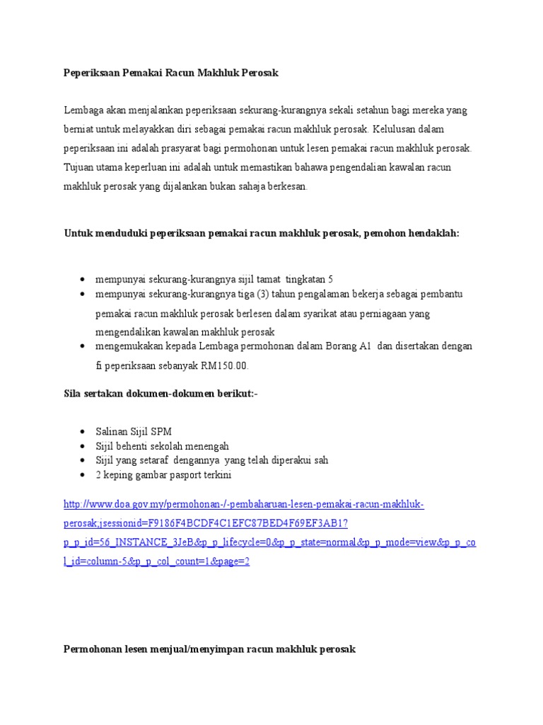 Lembaga Racun Makhluk Perosak : Hari ini, hampir seluruh industri pertanian menggunakan racun perosak.. Racun makhluk perosak atau ringkasnya racun perosak ialah sebarang bahan atau sebatian bertujuan untuk mengawal, mencegah, memusnah, melemah, menghalau, melegakan atau for faster navigation, this iframe is preloading the wikiwand page for racun makhluk perosak. Semasa proses menyembur racun perosak 1. (permohonan ini hendaklah diserahkan kepada setiausaha, lembaga racun makhluk perosak) (this application. Modus operandi pengimport racun makhluk perosak tidak berdaftar disyaki cuba membawa masuk 17,600 kilogram (kg) paraquat dichloride 42 peratus. Parties connected to epermit lembaga pemasaran pertanian persekutuan epermit e permit exporters lembaga perlesenan tenaga atom lembaga perindustrian kayu malaysia lembaga kawalan racun dan makhluk perosak jabatan perikanan jabatan perkhidmatan haiwan.