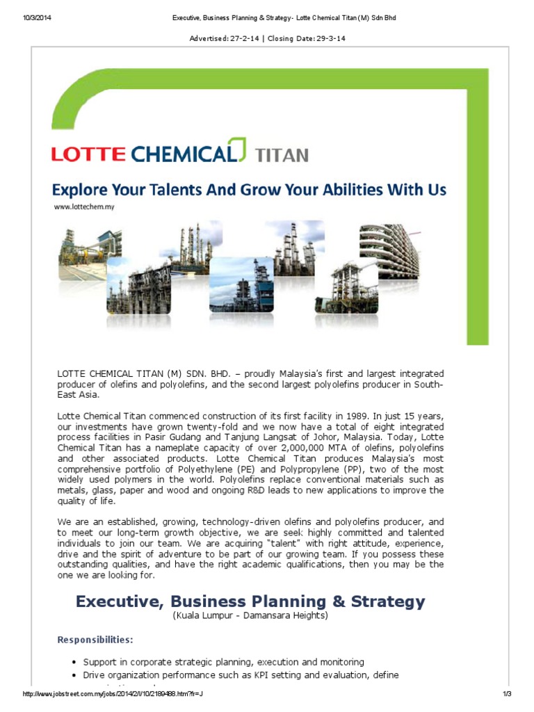 Eye On Stock Lotte Chemical Titan The Star from clips.thestar.com.my.s3.amazonaws.com Lotte chemical singapore pte ltd. Flawless balance sheet with proven track record. Petronas chemicals fertiliser kedah sdn bhd is a malaysian urea production company and a wholly owned subsidiary of petronas. Lotte chemical titan (m) sdn. Should you invest in lotte chemical titan holding berhad (klse:lctitan)? (former titan chemicals) > category : Bhd., asia logistics council sdn. Le groupe, qui comprend la société et sa filiale, est un producteur pétrochimique intégré comprenant deux grandes catégories de produits :